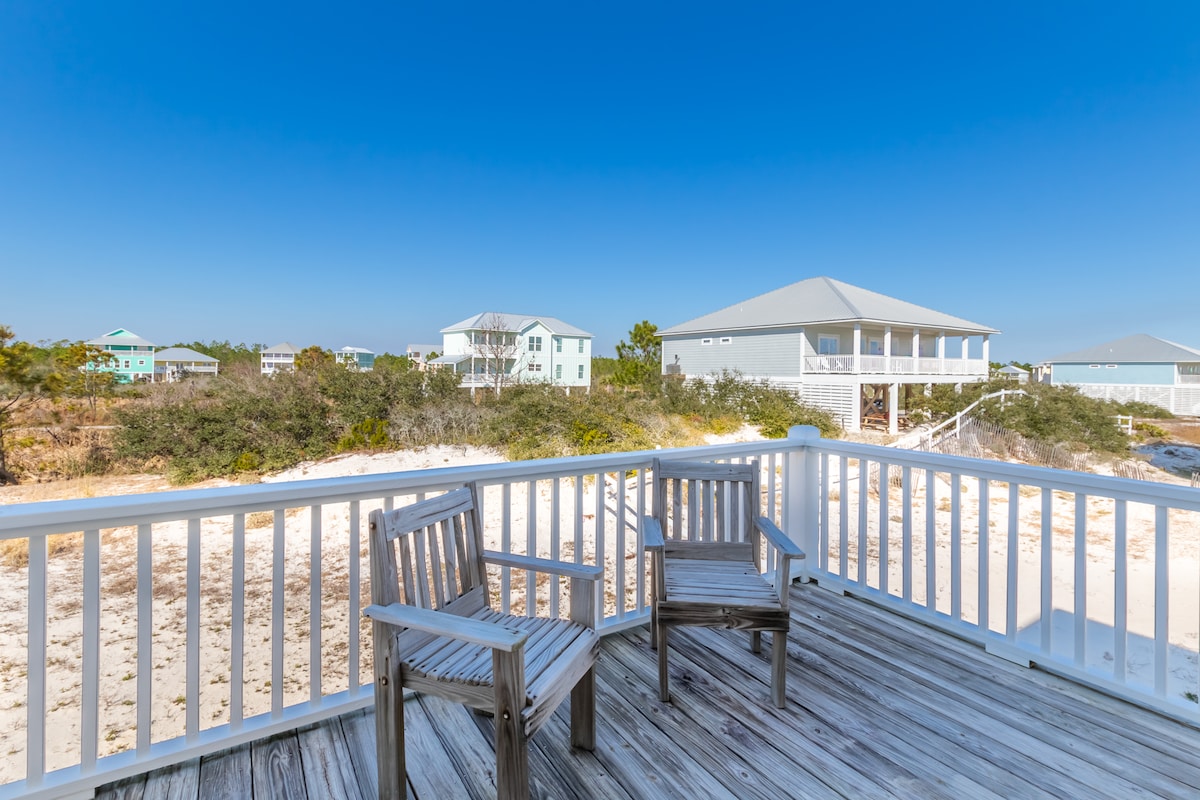 Gulf ShoresThe beautiful view and sounds of the ocean on your own private deck make this place a “Sanctuary” from the hustle of day-to-day life. Sanctuary at Sawgrass is a large second tier beach home located in the exclusive Morgantown community that has 5 bedrooms, 4 bathrooms and 2 levels of large decks with gorgeous Gulf views. Walk across the street to the beach access and find sand under your toes in under a minute as this property is only a few houses from the neighborhood beach boardwalks!