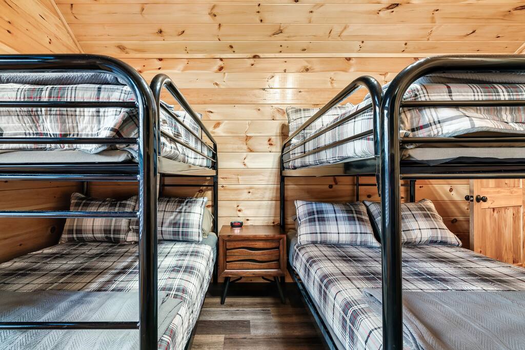 ★ OCUPANCY 12 Person Max. All guests must be 25+ (children with parents are allowed) ★ ENTRY: The front door is equipped with an electronic keypad. We will send you your passcode for your door lock. Check in after 4pm No late check-out or early check-in. If you arrive early or depart late, there will be a $100 charge per half-hour. ★ HEATED INDOOR POOL The saltwater pool is the highlight of the cabin! The 16' x 8' Indoor Pool is heated to 84 degrees year round. The pool depth is 3 feet deep. Use at your own risk and supervise children as there is no life guard. The pool is private, exclusively for the use of cabin guests. ★ INTERNET/STREAMING TV’S: High Speed Wireless Internet is included in your stay throughout the cabin. The living room has a 65 inch large flat screen Roku smart TV, great for family movies or ballgames. The loft game room also has a 65 inch streaming Roku smart TVs. Streaming Roku Smart TV's. BYO password for streaming services such as Netflix, Amazon Prime, etc... ★ BEDROOMS There are 3 king master bedrooms with en-suite bathrooms which accommodate up to 6 adults comfortably. The top level also has an ensuite bedroom with 2 full over full bunk beds that can sleep 4 adults comfortably or up to 8 kids comfortably. ★ BATHROOMS 4 bathrooms: 3 with a walk-in showers and 1 with a shower/bathtub combo. ★ KITCHEN A dining table with 2 chairs and 2 benches in the kitchen can fit 8 people. There is also a table behind the sofa that can fit three additional people and a similar table in the loft for three people. The open dining area and a fully equipped kitchen provide for wonderful space for family gatherings. Appliances, pots, pans, cups, plates, utensils, drip/pod Keurig coffee maker. ★ DECK Large deck on the main level with two rockers and a side table, a table and two chairs, gas grill and 5 person hot tub. ★ LAUNDRY Washer and dryer, ironing board and iron. ★ AMENITIES Our cleaning service provides initial start-up supplies including toilet paper, paper towels, dishwasher detergent, trash bags, shampoo and bar soap. Depending on the length of your stay, you may need to purchase some of the items when the initial supply runs out. ★TRASH Please place all trash in trash bags and place in bear proof trash container in front of cabin. We do not have regularly scheduled trash pick up. An additional trash pickup can be coordinated for an additional $25 fee. Please message us if you need a mid-stay trash pickup. ★ HOT TUB The hot tub is for guests 25 and over only. Alcohol is not allowed near the hot tub. You are not allowed to use the hot tub if you have consumed alcohol or you are pregnant. Use the hot tub AT YOUR OWN RISK! ★ GAME ROOM LOFT The loft on the second level game room is complete with a pool table and barrel multicade arcade to enjoy at your leisure. The pool table has 42" and 48" cue sticks (room is not spacious enough for 57" pool cue sticks). ★ SECURITY Ring Floodlight Security Camera by the front exterior entrance for your safety. Ring camera turn on with motion and record. There are no indoor cameras. ★ NO PETS allowed. If you sneak in a pet of any kind, you will be charged an additional $500 and you will be required to leave immediately with no refund. ★ NO SMOKING ★ Absolutely no fires inside or out. Unauthorized fires including candles will be charged $100 plus damages. ★ We do not offer refunds for weather or natural disasters. We recommend four wheel drive during inclement weather and winter months for the steep road into the neighborhood.