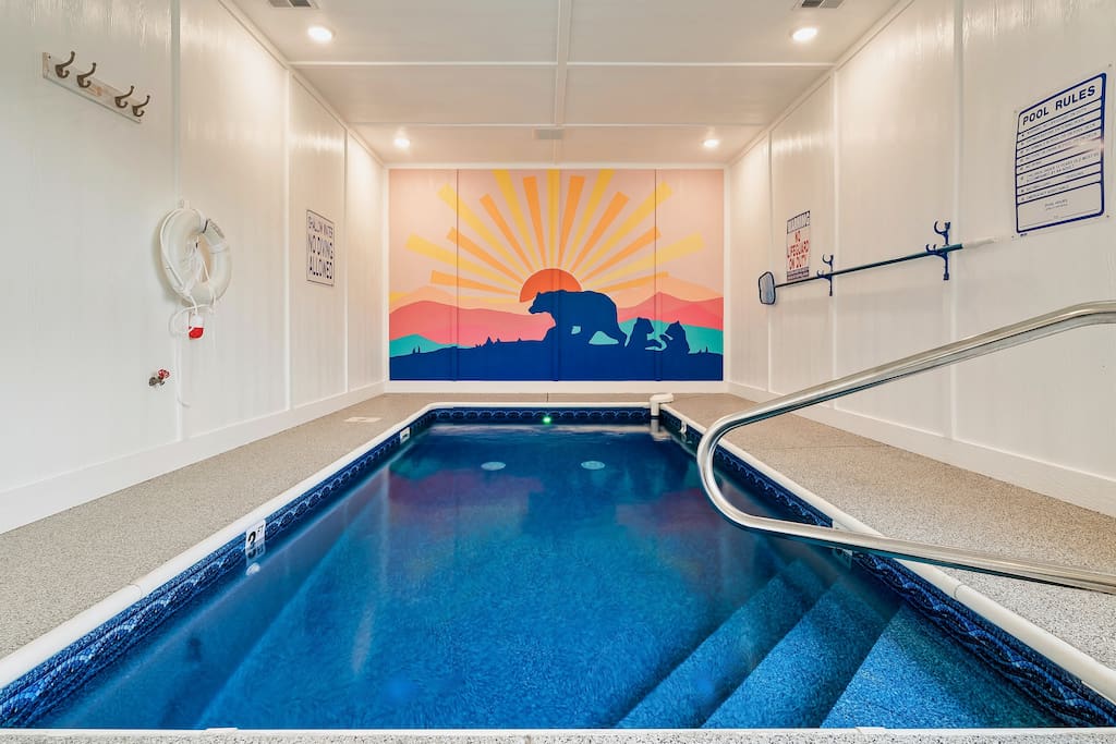 Escape to the heart of the Smoky Mountains and experience the ultimate in relaxation and entertainment at our stunning Indoor Heated Swimming Pool Cabin. This exceptional two-level cabin is perfectly situated right off the Parkway, offering unrivaled convenience and easy access to all the captivating attractions of Gatlinburg, Pigeon Forge, and the breathtaking Smoky Mountains. Accommodating up to 12 guests, this beautiful cabin boasts 4 spacious en-suite bedrooms, ensuring privacy and comfort for everyone in your group. The modern amenities and tasteful decor make it a cozy home away from home, promising an unforgettable retreat in the midst of nature's wonders. The highlight of this cabin is undoubtedly its private indoor heated swimming pool. Whether it's a summer getaway or a winter escape, you can enjoy a soothing swim in the crystal-clear waters year-round. For those seeking entertainment, the cabin offers a variety of options. Challenge your friends and family to a friendly game on the pool table, or relive the golden age of arcade gaming with our multi-cade machine, providing hours of nostalgia and fun. Craving the great outdoors? Go for a hike in the park or fire up the outdoor grill and savor a delicious barbecue meal while breathing in the fresh mountain air. The cabin's outdoor spaces are perfect for enjoying the natural beauty that surrounds you. When it's time to unwind indoors, you'll find modern comfort in our streaming smart TVs. Catch up on your favorite shows, watch a movie night with loved ones, or simply cozy up by the fireplace with a good book. This cabin isn't just a place to stay; it's your base camp for exploring the wonders of the Smoky Mountains. With its proximity to local attractions and its own array of amenities, your days can be filled with adventure and your nights with relaxation. Whether you're seeking adventure, tranquility, or a bit of both, our Indoor Heated Swimming Pool Cabin offers the perfect blend of luxury, convenience, and entertainment. Book your stay today and embark on an unforgettable journey in the heart of the Smokies! ★ ~2400 Sq Ft ★ Indoor saltwater pool heated to 84 degrees! ★ Reliable Very Fast High Speed Internet (~350MB!) ★ Multicade Barrel Arcade! ★ Pool Table ★ Parking that easily fits three to four cars (five if parked strategically or double parked) ★ Prime Smoky Mountains Location that is right off the Parkway. Private yet convenient ★ ONE minute to Parkway, 7 minutes to The Island, 12 minutes to Dollywood, 14 minutes to Gatlinburg Mountain Village and 15 minutes for the National Park ★ Streaming Roku Smart TV's. BYO password for streaming services such as Netflix, Amazon Prime, etc... ★ Washer/Dryer ★ Fully Equipped Kitchen ★ Enjoy the large deck with comfortable rockers, table and chairs, gas grill and hot tub ★ Close to restaurants, shopping and lots of entertainment ★ Sleeps 12 with three en-suite king bedrooms and an en-suite bunk room with two full over full bunks ★ Comfortable relaxing living room with electric fireplace ★ Private hot tub for 5 people ★ NO pets allowed ★ NO Smoking