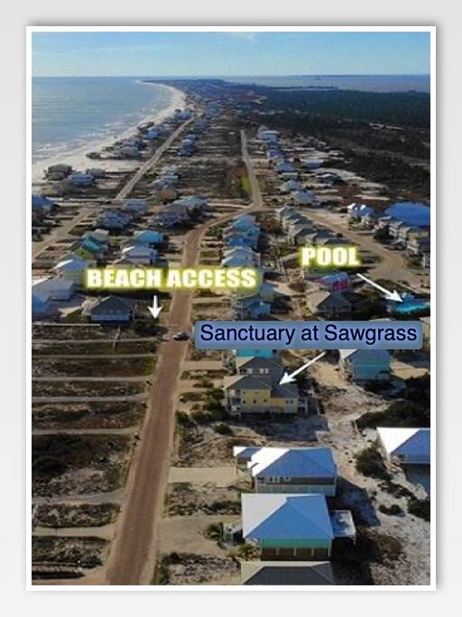 Sanctuary at Sawgrass by Thompson Retreats ★ Accommodates up to 13 people ★ 5 Bedrooms (4 King beds, 1 Queen bed, 1 bunk bed and a day bed). ★ 2 levels of balconies with Gulf views ★ Beach chairs, a wagon, and other items are available for your use at the beach (see reviews!) ★ Less than 100 steps to Private Community Beach Access ★ Spacious living room, dining room, and fully equipped kitchen with 10 foot ceilings ★ Access to two community Pools and Tennis courts that are also striped for pickleball ★ Great Community Roads that are conducive for Walking and Biking ★ Parking fits up to 6 cars ★ Reliable High Speed Internet ★ Park style charcoal grill behind the property ★ No pets allowed ★ No Smoking ★ Outdoor Shower ★ Unfortunately, this property is not available to student spring break groups. Families and those over age 25 are welcome! Here Are A Few Kind Words From Our Past Guests: "The Sanctuary at Sawgrass is SUCH a perfect place to stay for a family vacation in Gulf Shores, AL. The home is EXACTLY as it is pictured. The views of the beach/water are completely accurate (and lovely). The upper and lower decks are perfect for morning coffee and for catching the gorgeous colors of a Gulf sunset. The décor is exactly as shown in the photographs. The home is well furnished and decorated; feels modern and stylish, but very welcoming and comfortable." - Megan "I wish I had the time to accurately depict how incredible this home was. It was not only incredibly close to the beach .. it was well decorated with quality higher end decor. It was well equipped for cooking, had all the beach accessories you would need and the owners were SOOOOO ACCOMODATING! We will be back here .. every year! FIVE STARS .. plus some!" - Joshua "Jennifer and Jays place was perfect! It was exactly as pictured, very clean, and you can’t beat the location." - Ana ADDITIONAL DETAILS: ★ UPGRADES We added new Quartz countertops, updated cabinets and a new backsplash in the kitchen and bathrooms. Other recent upgrades include new living room furniture, new patio furniture and Tommy Bahama chairs for the beech. We also added upscale blinds in the living areas and certain bedrooms. The upstairs master king and downstairs queen bedroom had blackout blinds installed. ★ OCUPANCY 13 Person Max. All guests must be 25+ unless accompanied by parent. Families with children are always welcome! ★ PRIVATE PARKING: The house has parking space for 6 cars when using both the parking under the house and in front of the house. ★ ENTRY: The front door is equipped with an electronic keypad. We will send you your passcode for your door lock. Check in after 4pm. No late check-out or early check-in. If you arrive early or depart late, there will be a $100 charge per half-hour ★ INTERNET/STREAMING TV’S: High Speed Wireless Internet is included in your stay throughout the house. The TV room has a large 55" streaming Roku smart tv with the Secure Vision Expanded Cable TV lineup, great for family movies or ballgames. Streaming smart TVs are also in each bedroom (no cable in bedrooms). Bring your own passwords for your streaming apps. All tv's have antennas to watch local channels. ★ DECKS With spacious 12 foot decks on both the upper and lower levels, you'll enjoy great beach views as well as incredible sunrises and sunsets. When the Blue Angels are practicing, you'll have an amazing vantage point. The lower deck has a dining table and cozy seating and is entirely screened in for comfort. Dine al fresco or just enjoy that morning coffee or evening cocktail and listen to the sound of the surf. ★ KITCHEN/LIVING ROOM The window lined living and dining rooms with 10 foot ceilings have a cottage feel with slip-covered sofas and chairs. There is ample seating as the large dining table easily seats six people and the breakfast bar has seating for four people. There is also a table on the front porch with seating for six people. The well equipped kitchen means you'll be able to prepare meals for those nights when you choose to dine in. The large butterfly island is perfect for both entertaining and serving. ★ BEDROOMS Three bedrooms are on the first level. The first bedroom has a queen size bed with an en suite bath. The second bedroom features a king sized bed and has direct access to the hall bath. The third bedroom is light, bright and airy with a king size bed and a private small back deck. Upstairs, you can relax in the over-sized master suite complete with a king sized bed, twin day bed, large private bath and balcony access. The last bedroom upstairs is perfect for families as it features a king size bed, twin bunk bed and large private bath. This room enjoys balcony access as well. ★ LAUNDRY The house has a laundry room with washer and dryer. There is an ironing board and iron available as well. ★ AMENITIES Our cleaning service provides initial start-up supplies including toilet paper, paper towels, dishwasher detergent, trash bags, and soap. Depending on the length of your stay, you may need to purchase some of the items when the initial supply runs out. ★ POOL You will have access to the community pools which are a short walk from the house as shown in the listing pictures. The small pool was rebuilt in early 2025 and will now be heated in winter months. ★ SECURITY Ring Floodlight Security Camera by the front stairway for your safety. Blink cameras by the front parking and under the house. Cameras turn on with motion and record. There are no indoor cameras. ★ NO PETS allowed. If you sneak in a pet of any kind, you will be charged an additional $500 and you will be required to leave immediately with no refund given. ★ Absolutely No Smoking. ★ NO PARTIES. Only registered guests are allowed to be in the home. If you fail to follow this, it will result in an additional $500 charge and you will required to leave immediately with no refund. ★ We do not offer refunds for weather or natu